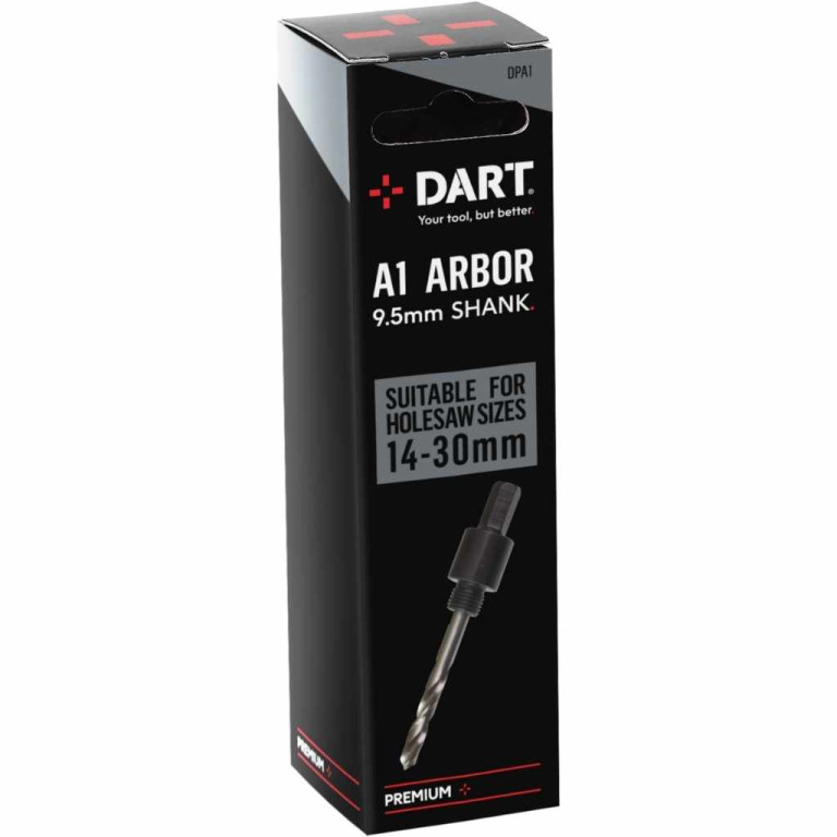 Premium Holesaw Arbor, the best option for all DART holesaws and will also fit most other holesaws available. Supplied with our standard 83mm long pilot drill, which can also be interchanged with the other holesaw pilot drills available from our range. This arbor has a 9.5mm Hex shank, and can be used on holesaws from 14 to 30mm