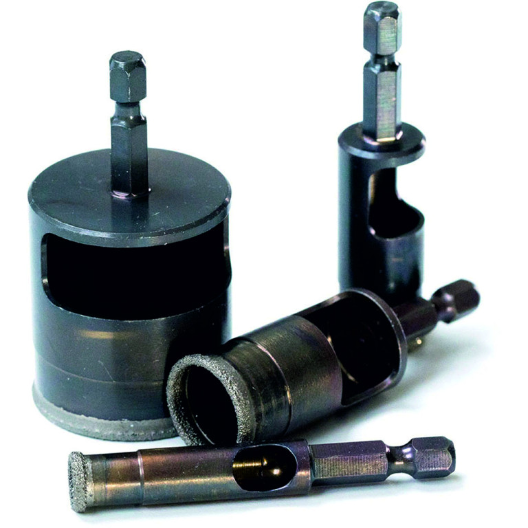 Download (0.20 MB)A unique product that requires no drill guide, minimal coolant and fast, easy waste ejection which allows for continuous multiple hole cutting. High grade exposed diamond for fast, smooth cutting. Excellent performance on cordless and corded drills. Should be dipped in water before drilling and every 5 seconds thereafter to ensure prolonged life. Suitable for very hard tiles, porcelain, ceramic, granite, marble, glass, slate and stone. Will cut 60+ holes.