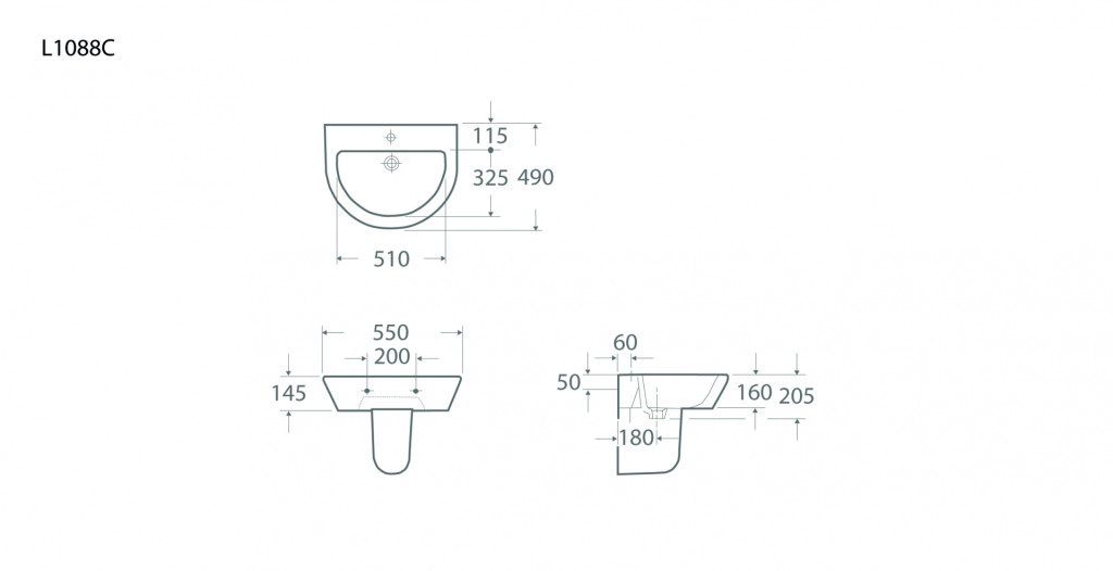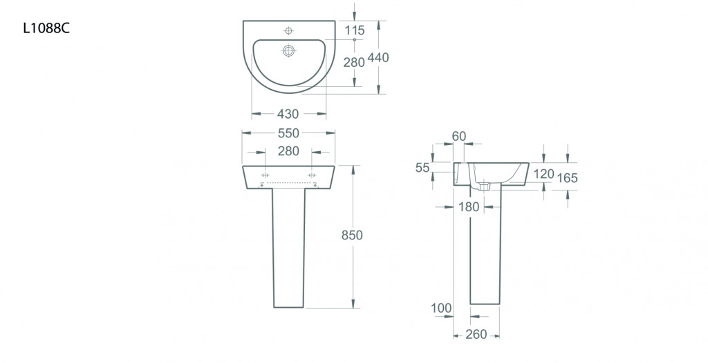 Arco 550mm 1TH Pedestal Basin