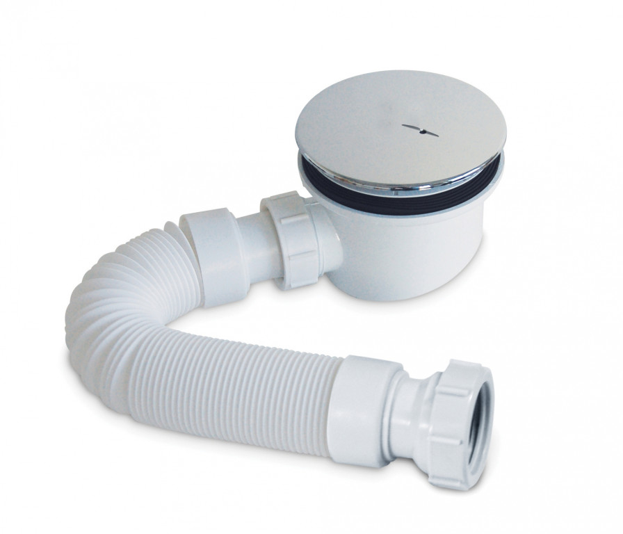 90mm Fast Flow Chrome Shower Waste Including Angle Compression Connector 40mm