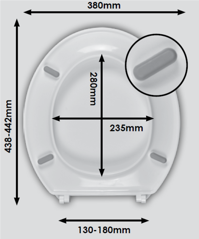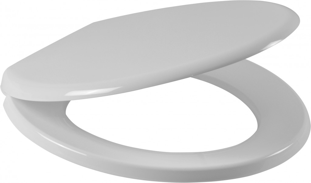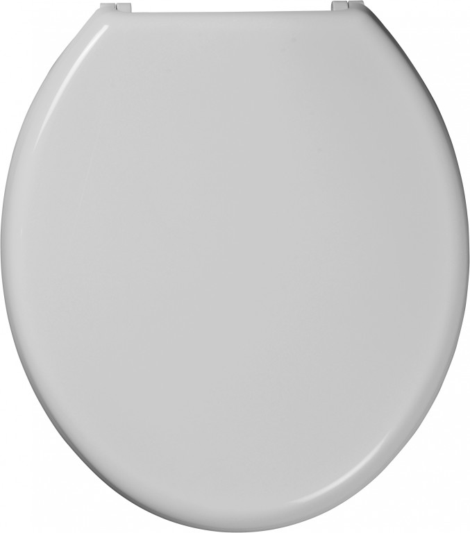 Wirquin White Flamenco Toilet seat and cover with plastic bottom fix hinges, comes with Lock+ to prevent seat movement. Shatterproof thermoplastic material 1.4kg
