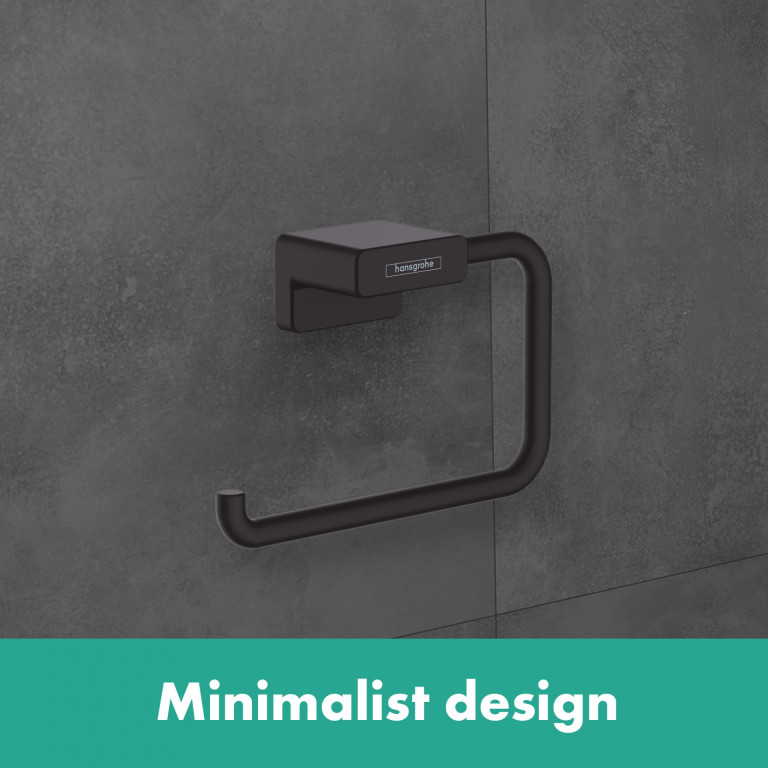 And the hansgrohe quality keeps the promises made by the premium design: THet AddStoris roll holder is made of metal, so it is made to last. This product is both a sustainable use of resources and it reduces the amount of plastic in bathrooms. The surface finish in a matt black colour is easy to clean and is one of the colour schemes in the range of hansgrohe special surface finishes for taps (FinishPlus). So everything can match perfectly.