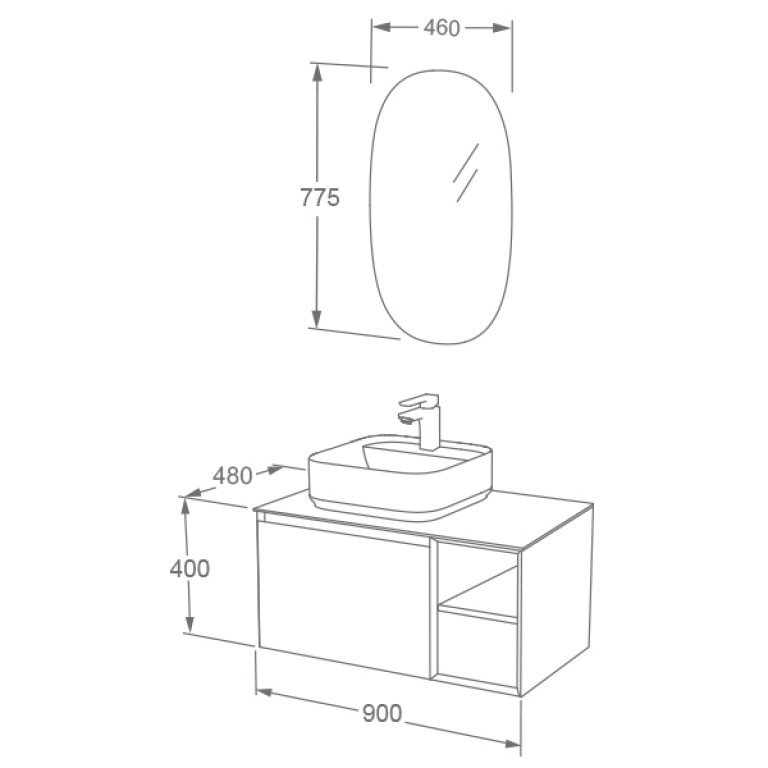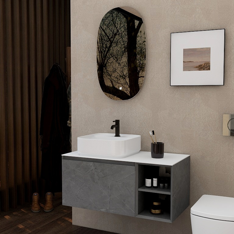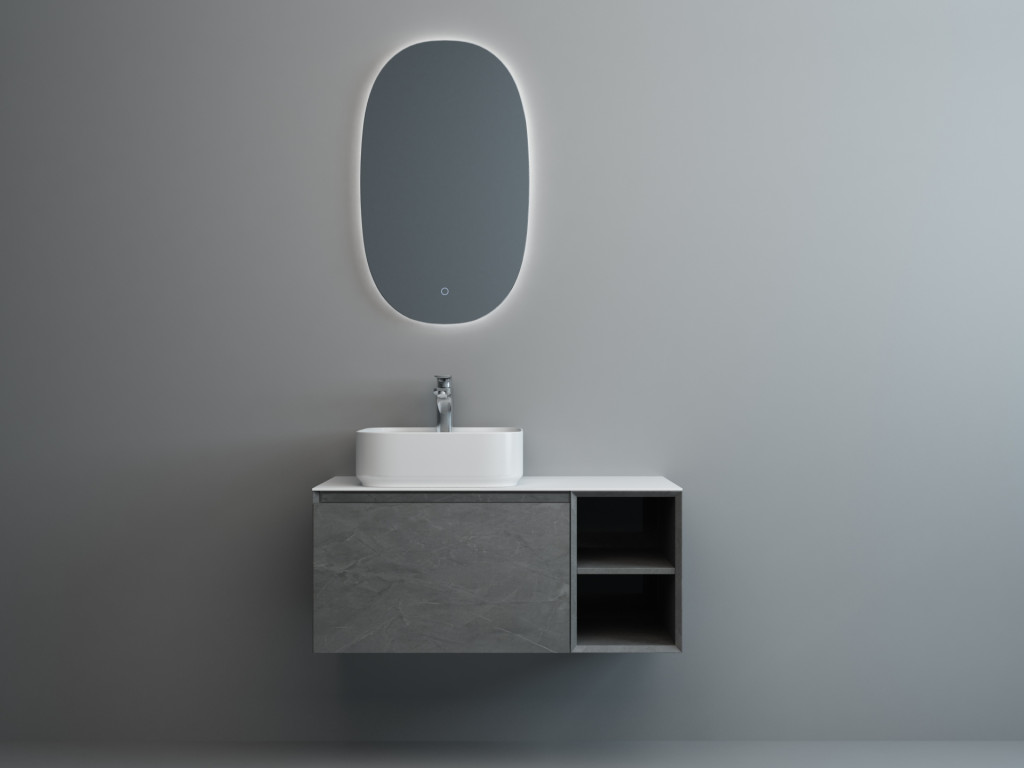 Ravine 900mm Single Drawer Cabinet with Open Storage in Slate