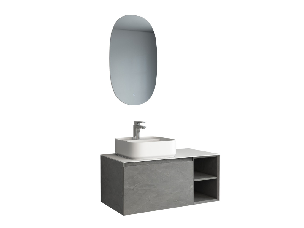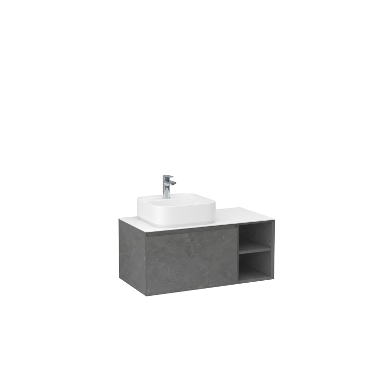 Ravine 900mm single drawer cabinet with open storage in Grey Marble