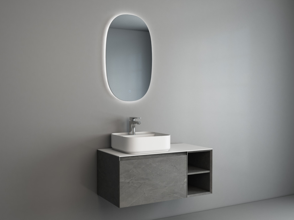 Ravine 900mm Single Drawer Cabinet with Open Storage in Natural Stone