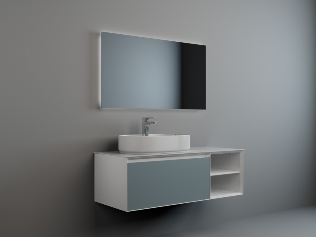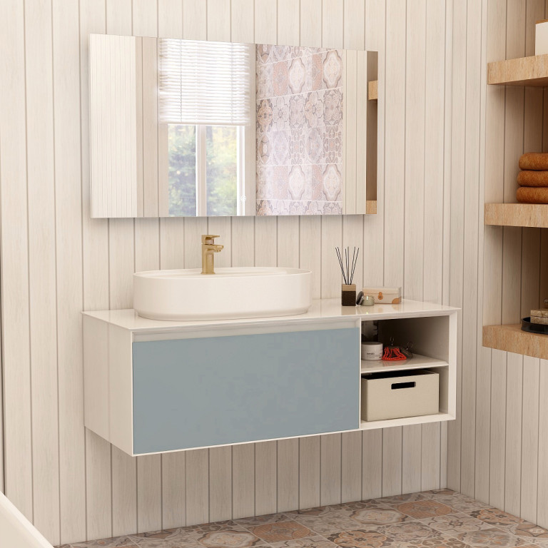 Essence 1200mm single Drawer cabinet with Open Storage in Duck Egg Blue