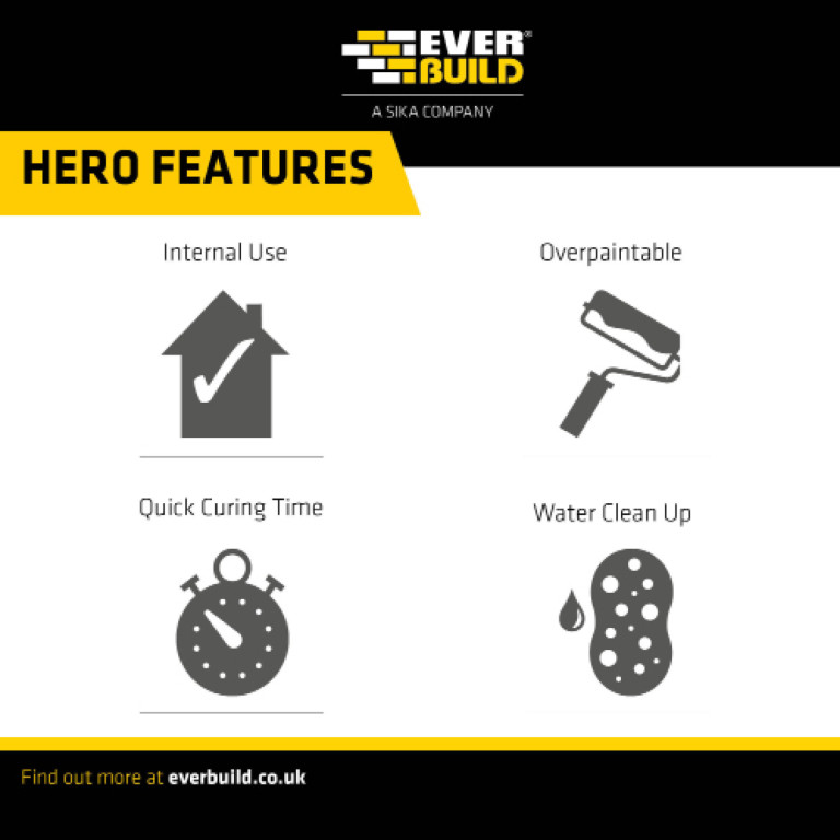 - For sealing and filling cracks and gaps prior to decorating. Can be used to fill damage plaster.