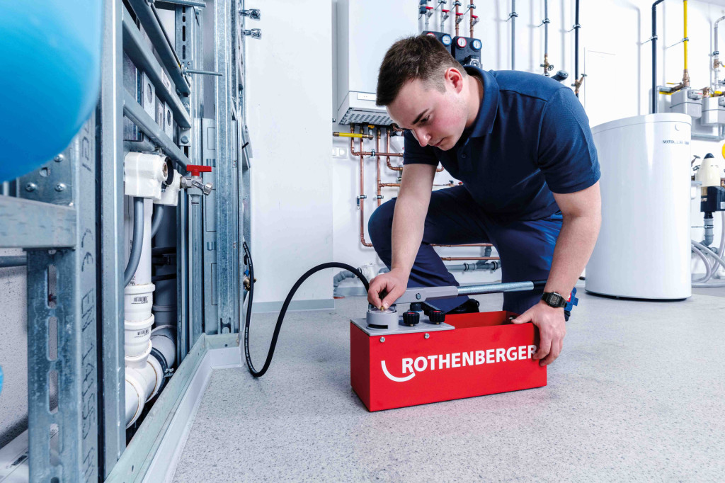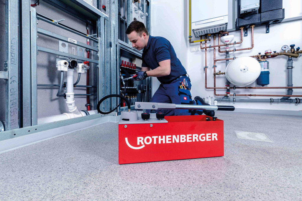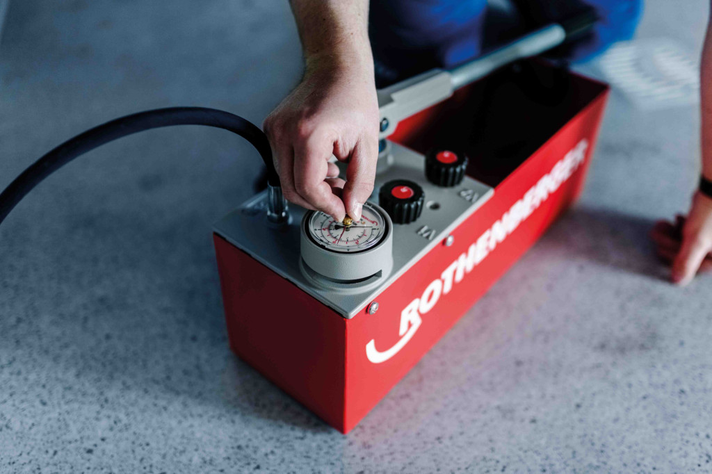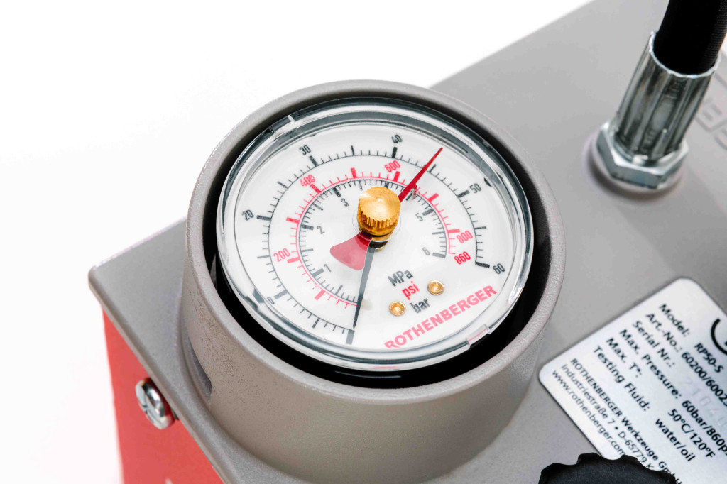 A compact pump ideally suited to domestic pipework testing, with a maximum pressure of 60 bar and a 12L tank capacity. Pressure Testing Pump is a rugged, reliable, and precise tool housed in a weather- and cold-resistant container with a DURAMANT coating. A dual-valve system (twin valve) facilitates fine pressure adjustments and enables self-testing of the pump to ensure repeatable and accurate readings. Moreover, a drag indicator clearly displays the pressure allowing you to see pressure drops in the system easily. Also working to maintain reliability and accuracy is the Rothenberger RP50 Pressure Testing Pump’s testing hose with a steel mesh, which prevents measurement errors caused by hose expansion.