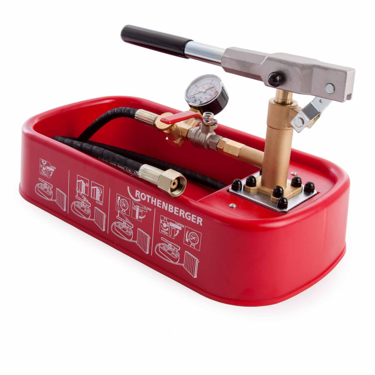 - Quick pressure and leak testing of small piping systems and vessels in sanitary and heating installations
