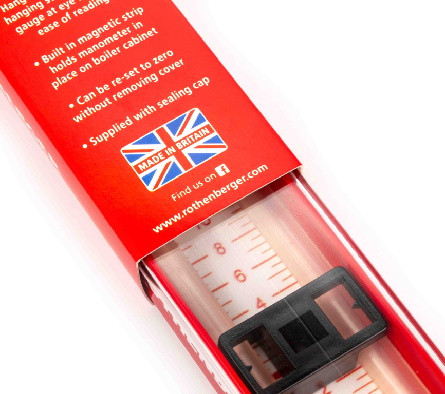 • Magnetic strip allows U-gauge to be attached to boiler cabinet casing during use
