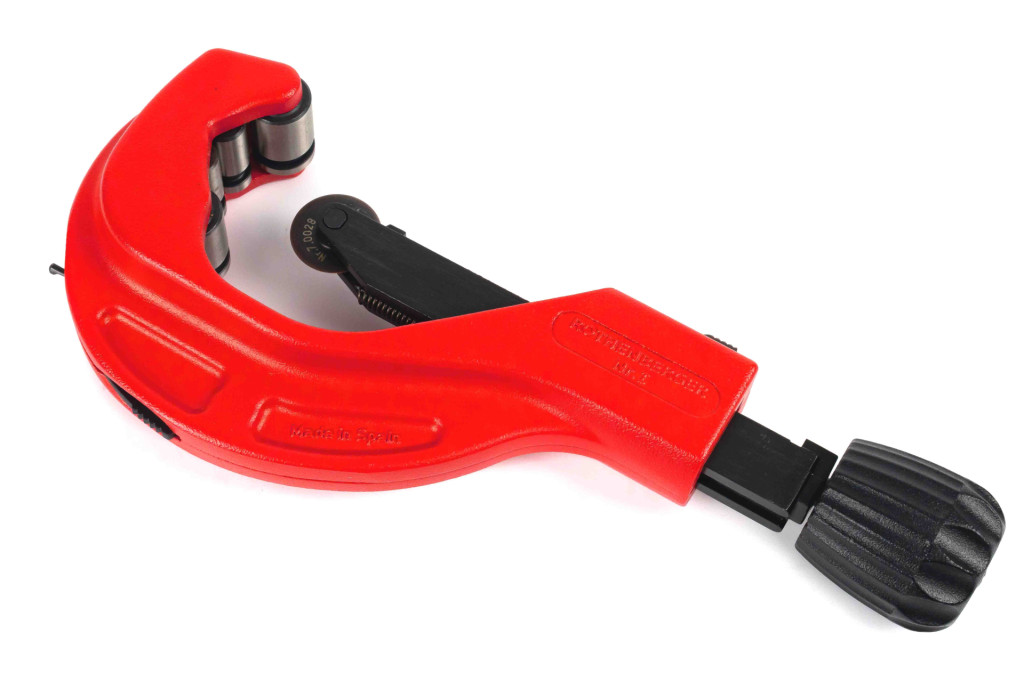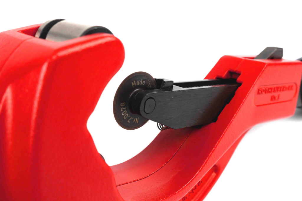 Automatic Copper Pipe/Tube Cutter cuts copper, brass, aluminium, thin-walled steel, and sound-insulated pipes or tubes. There are two sizes of these cutters available: one optimised for cutting pipes and one designed for cutting tubes. An integrated ratchet telescopic guide enables quick adjustment with automatic retraction while the Rothenberger Automatic Copper Pipe/Tube Cutter’s monoblock construction ensures it is sturdy and stable. The Rothenberger Automatic Copper Pipe/Tube Cutter is an easy-to-use combined cutter and deburrer.
