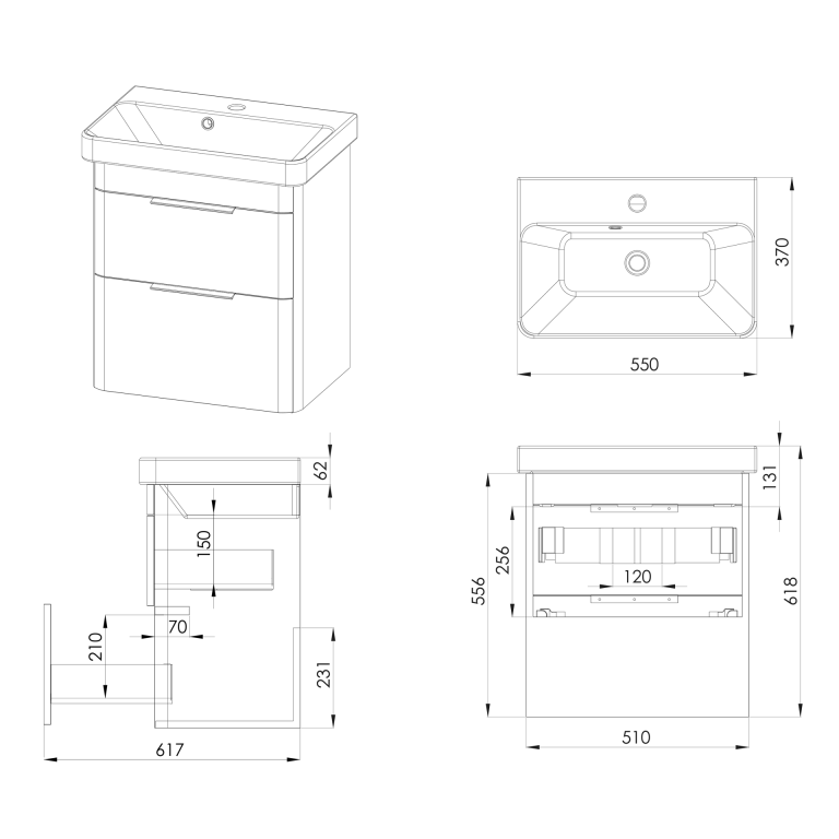 - Crofton 550mm two-drawer wall-hung vanity unit.