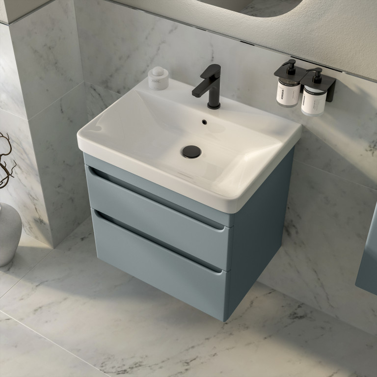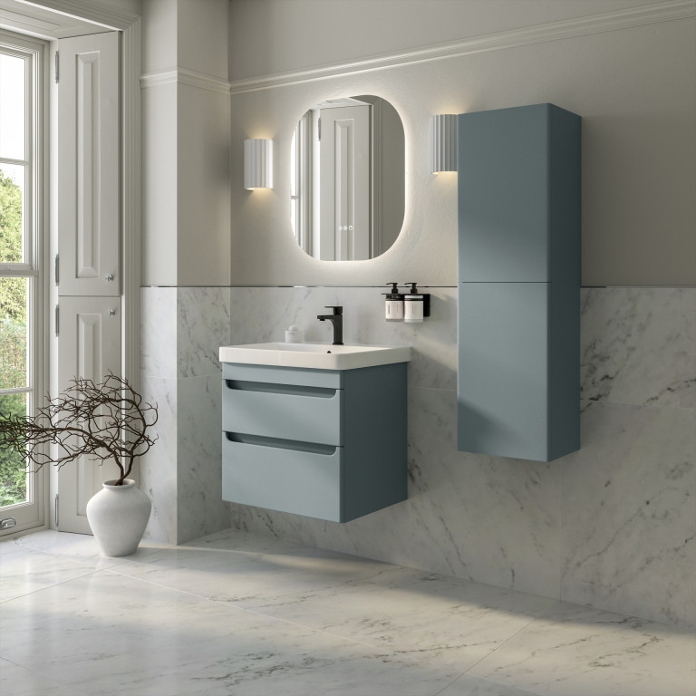 - Bromont 600mm two-drawer wall-hung vanity unit.