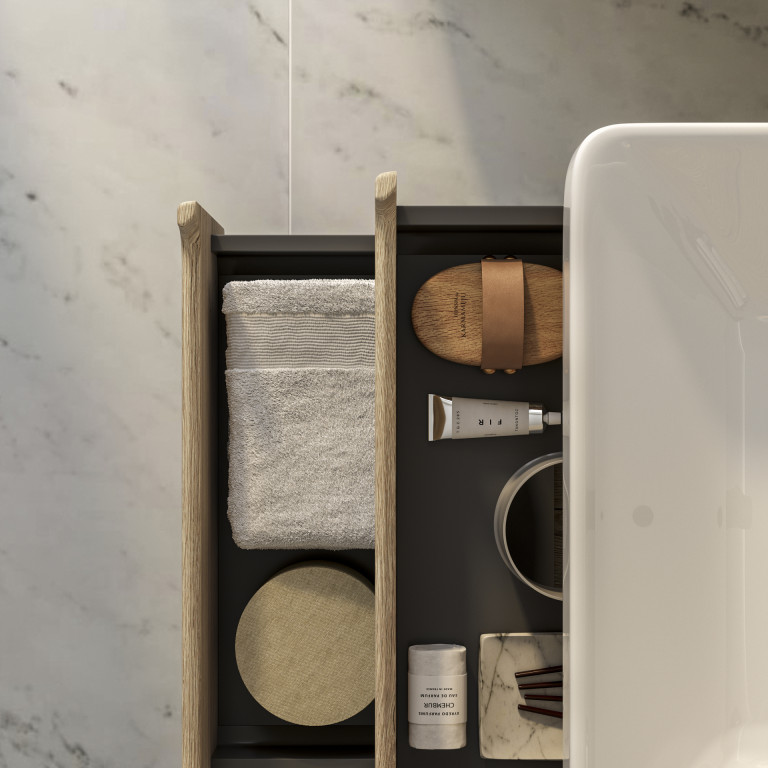 Bromont brings a contemporary feel to any bathroom with its rounded corners and integrated handles. Crafted with an emphasis on material quality, with an easy-to-clean ceramic basin, water-resistant matt finish and soft-close drawers. Bromont not only adds a touch of modern elegance to your bathroom but also prioritises functionality and quality.