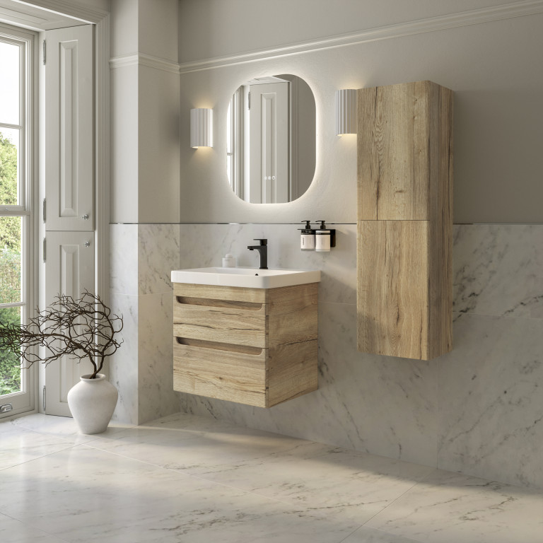 - Bromont 600mm two-drawer wall-hung vanity unit.