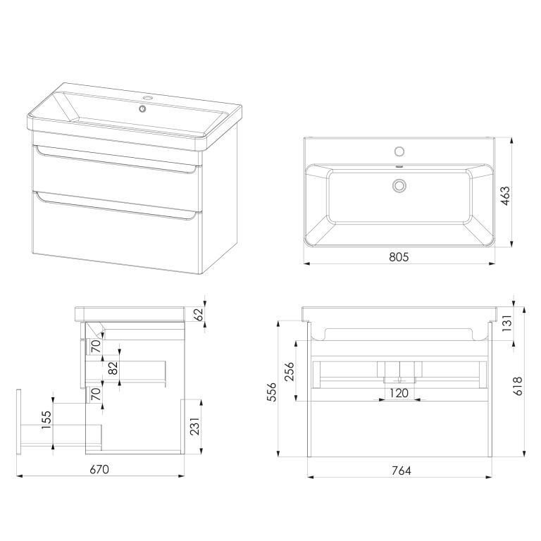 - Bromont 800mm two-drawer wall-hung vanity unit.