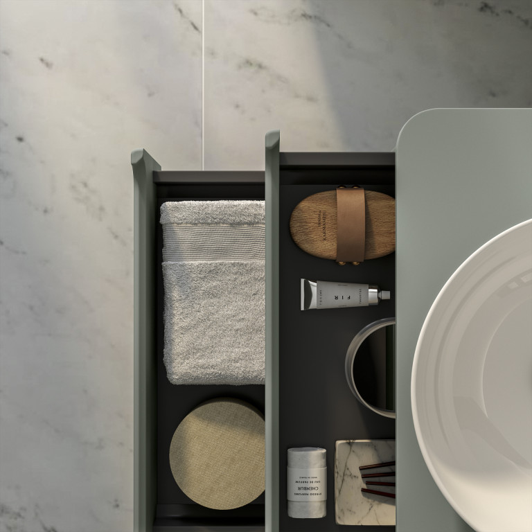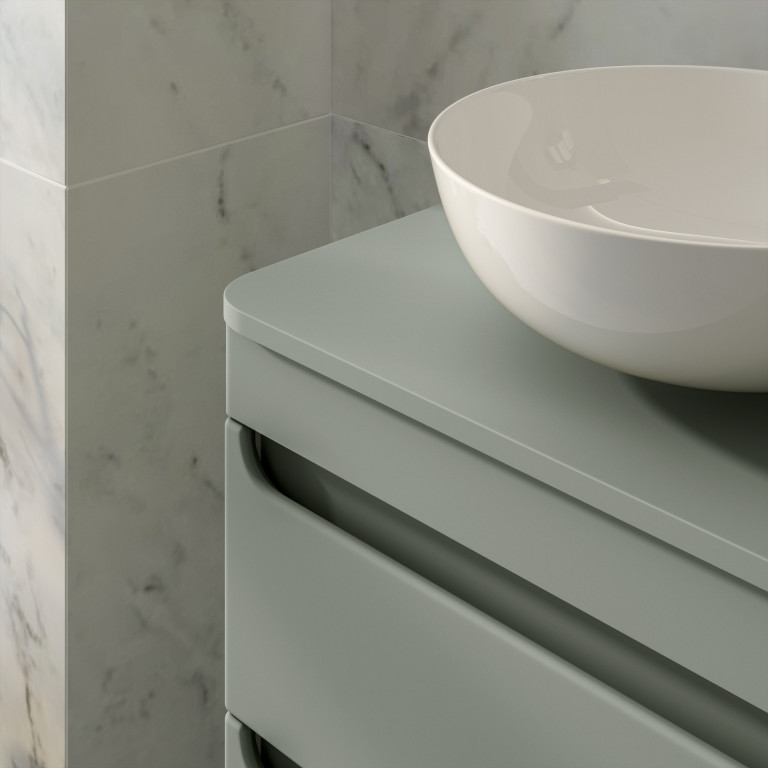 Bromont brings a contemporary feel to any bathroom with its rounded corners, integrated handles and colour-matched worktop. Crafted with an emphasis on material quality, with an easy-to-clean, ceramic bowl, water-resistant matt finish and soft-close drawers. Bromont not only adds a touch of modern elegance to your bathroom but also prioritises functionality and quality.