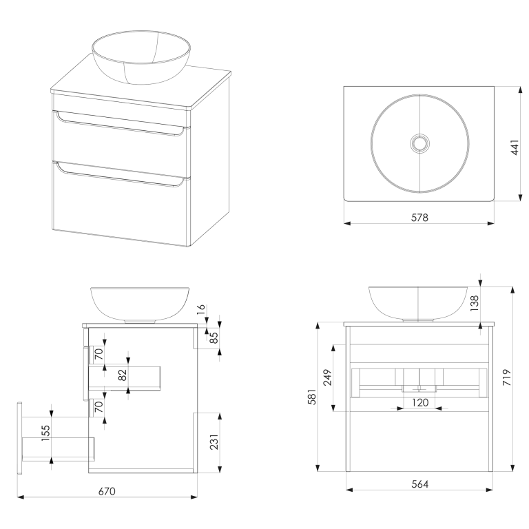 Bromont 2 Drawer Vanity 700mm with Worktop and Ceramic Sit-on Bowl - White Matt