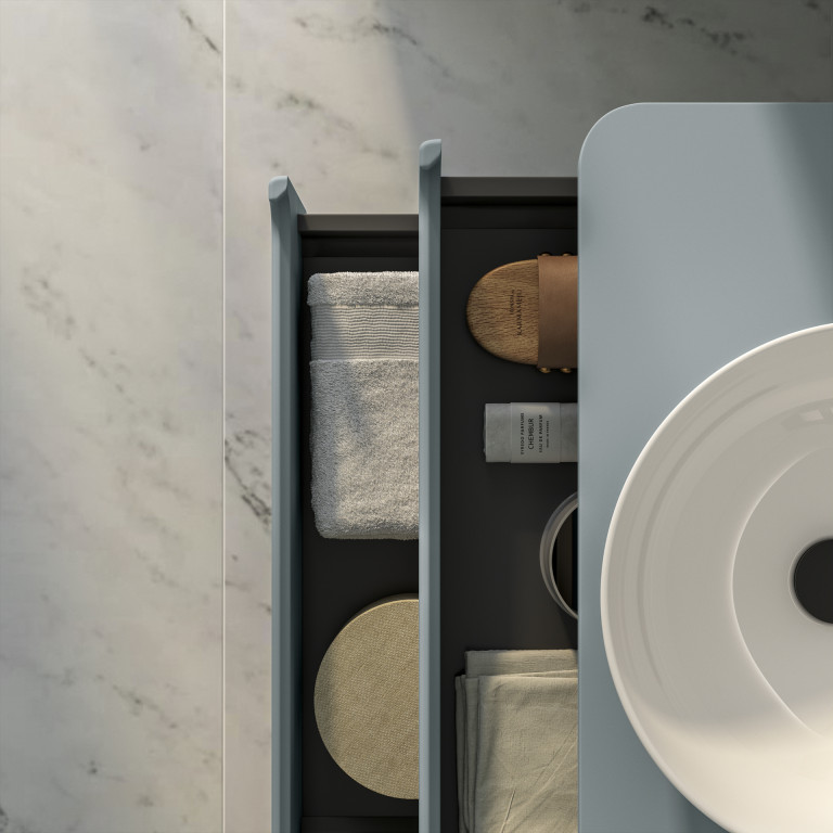 Bromont brings a contemporary feel to any bathroom with its rounded corners, integrated handles and colour-matched worktop. Crafted with an emphasis on material quality, with an easy-to-clean, ceramic bowl, water-resistant matt finish and soft-close drawers. Bromont not only adds a touch of modern elegance to your bathroom but also prioritises functionality and quality.