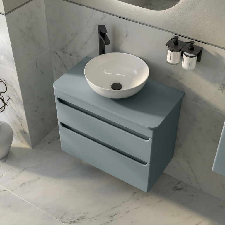 Bromont 2 Drawer Vanity 700mm with Worktop and Ceramic Sit-on Bowl - Verdant Green
