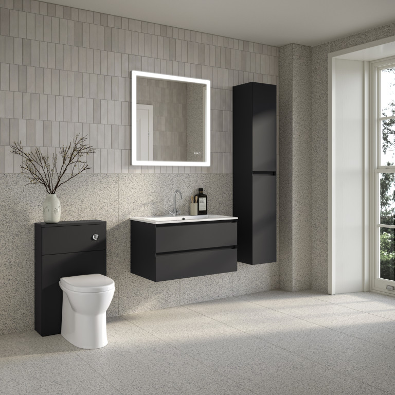 The Vernas WC unit is a companion to the Vernas vanity unit. It effortlessly combines modern elegance and functionality with its sleek profile, integrated cistern, and hinged upper panel for easy access.