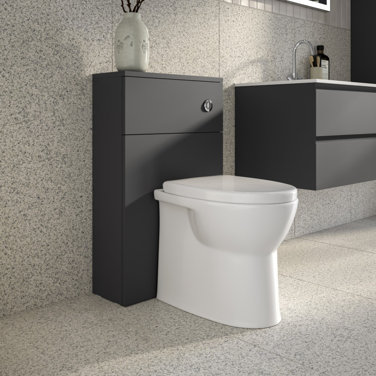 Vernas WC Unit 500mm with Cistern and Chrome Flush Button - Anthracite Gloss