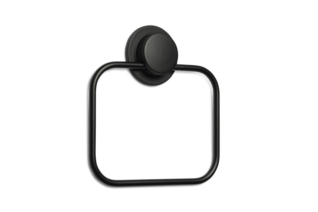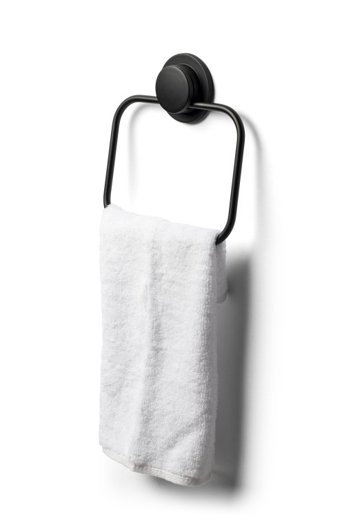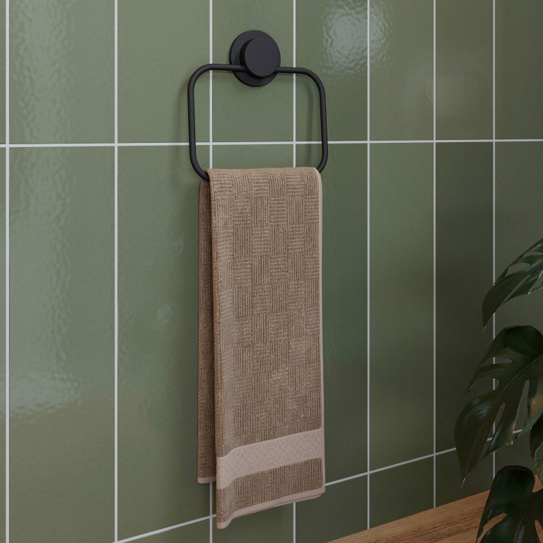 This matt black towel ring sits beautifully in any modern setting, incorporating bathroom linen styling into the overall décor.