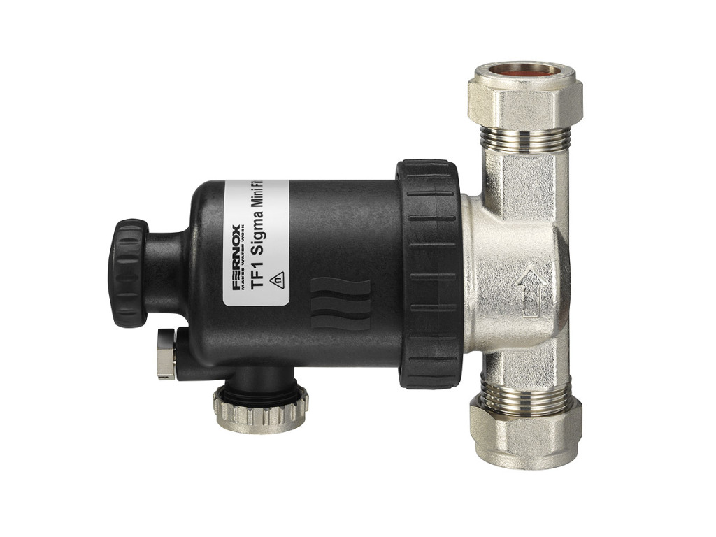 The TF1 Sigma Mini is a compact high-performance system filter that utilises a powerful neodymium magnet to protect your system against the damaging effects of corrosion. The TF1 Sigma Mini has the smallest footprint of any filter in the marketplace, which means it can be easily installed directly below a boiler or in restricted spaces on horizontal or vertical pipework.