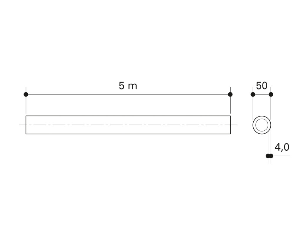 Multilayer composite pipe, colour: white, in straight lengths made of cross-linked polyethylene (PE-Xb) as inner surface, longitudinally butt-welded aluminium pipe, and polyethylene of raised temperature resistance (PE-RT) as outer surface for drinking water and heating system installations.