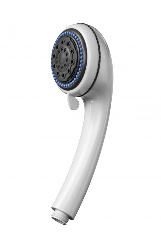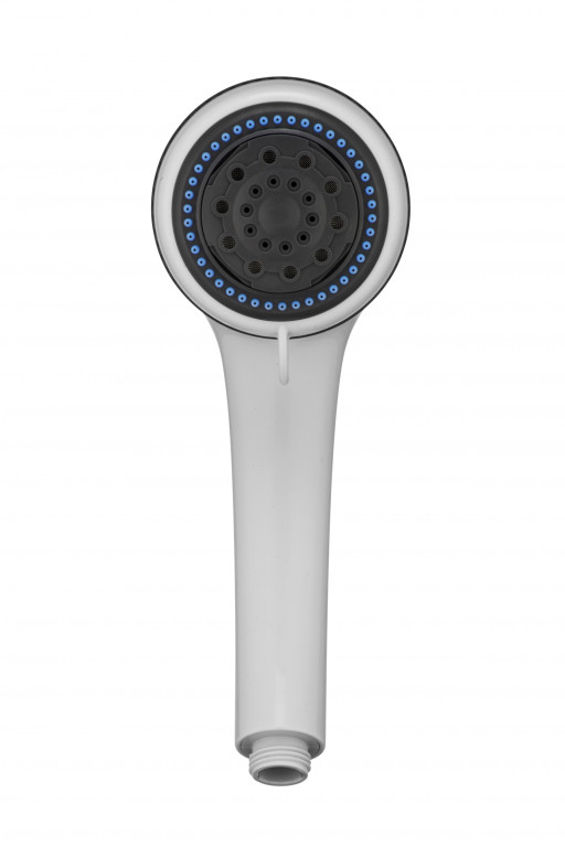 Boasting a fresh white finish, this sleek accessory is sure to suit any décor.- Three function shower head with rub clean nozzles