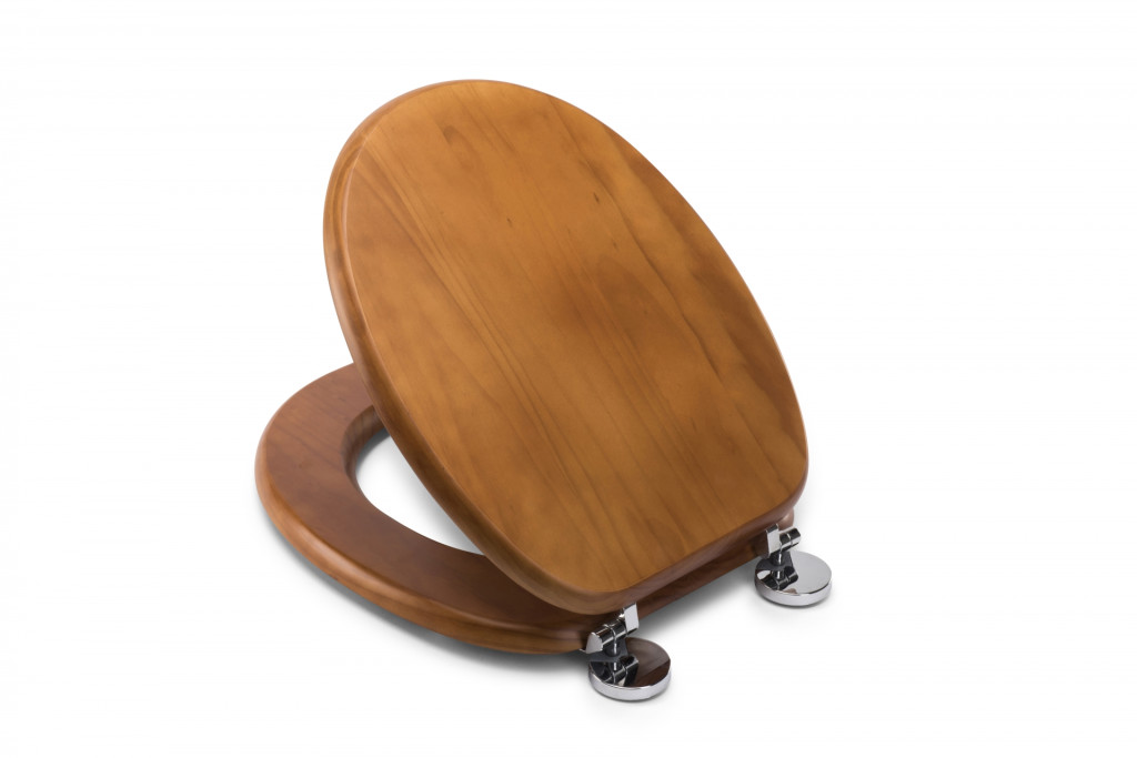 This solid wood seat, with antique pine effect finish, incorporates a natural, timeless quality to your bathroom.